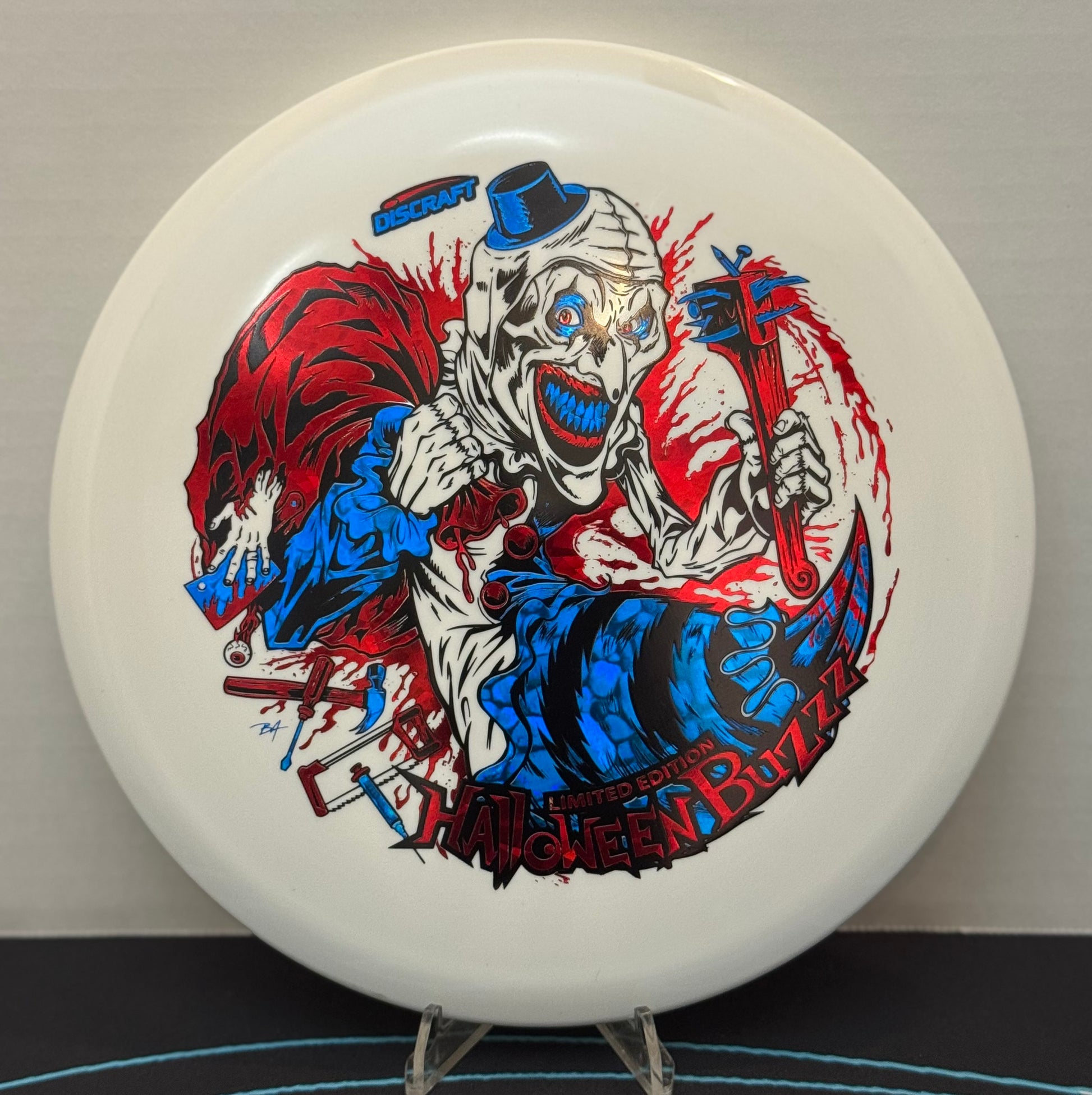 In the darkness, the 2025 Tri-Foil Glo Halloween Buzzz comes alive, featuring a sinister clown silhouette layered within triple foils that shimmer over signature glow plastic. Combining precise flight characteristics with a chilling design, this edition delivers a striking presence both in play and on display.