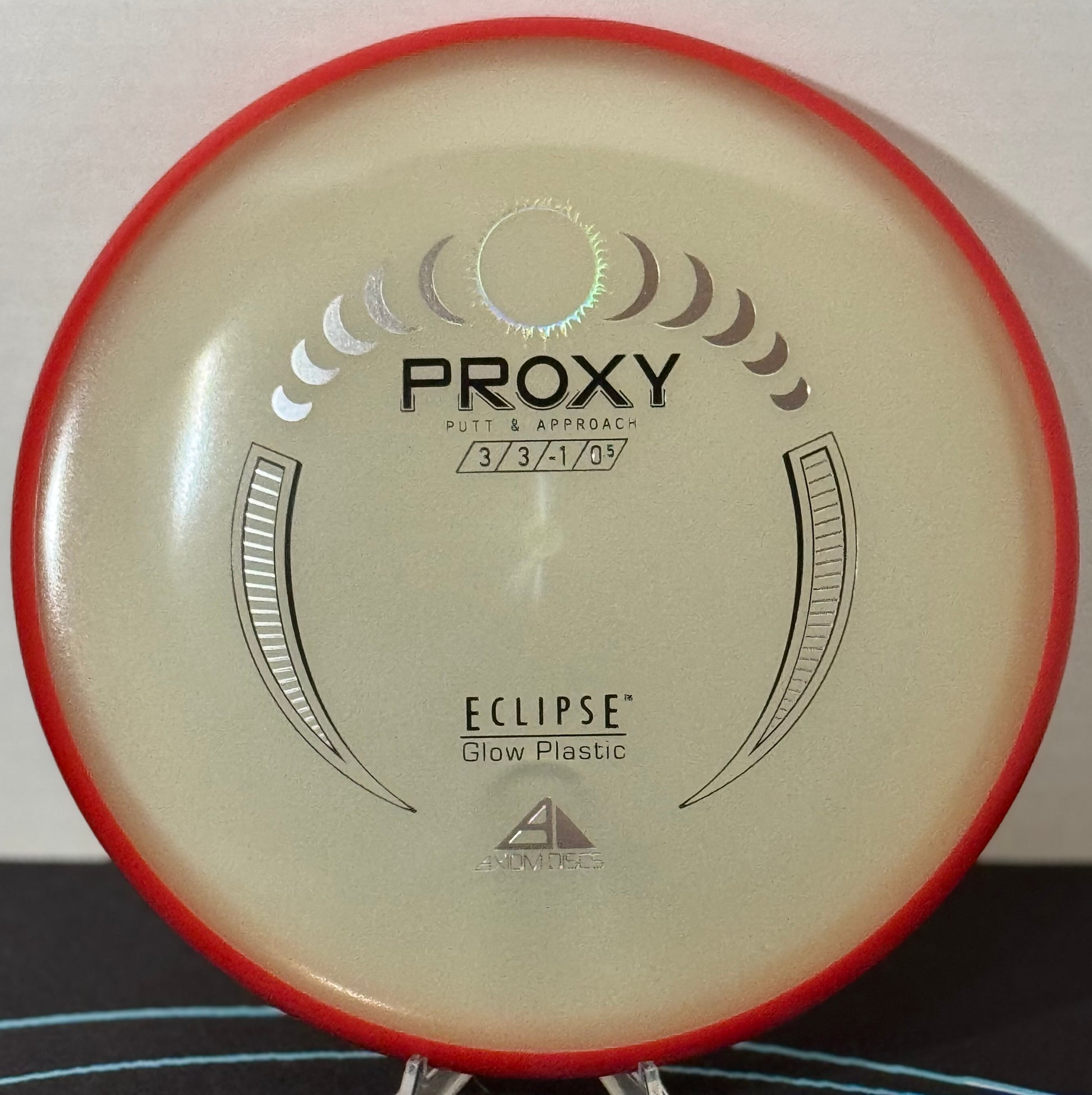 The Proxy shares the Envy mold’s core, lending the same low-profile feel and solid grip, along with a short wing width and wide flight plate diameter for superior glide. The Proxy sets itself apart from the Envy with a remarkably straight-forward-fading finish. A bit of high-speed turn potential allows the Proxy’s lines to be manipulated over a broad range of power and helps less powerful throwers achieve straight putter drives.