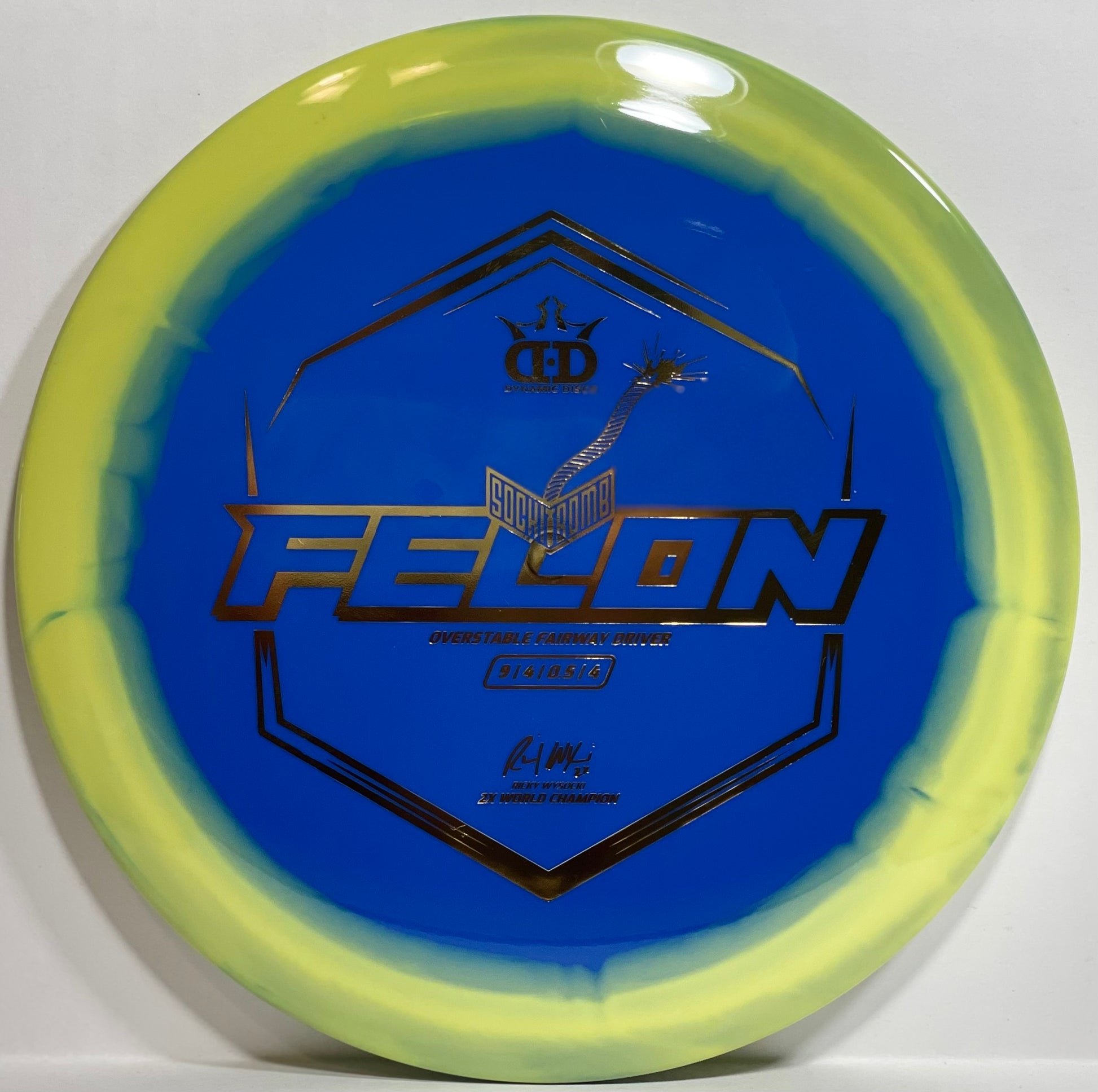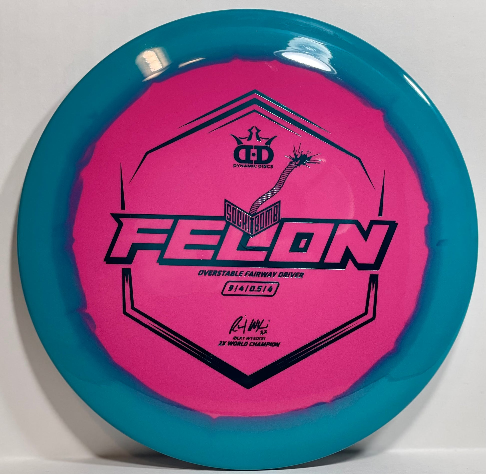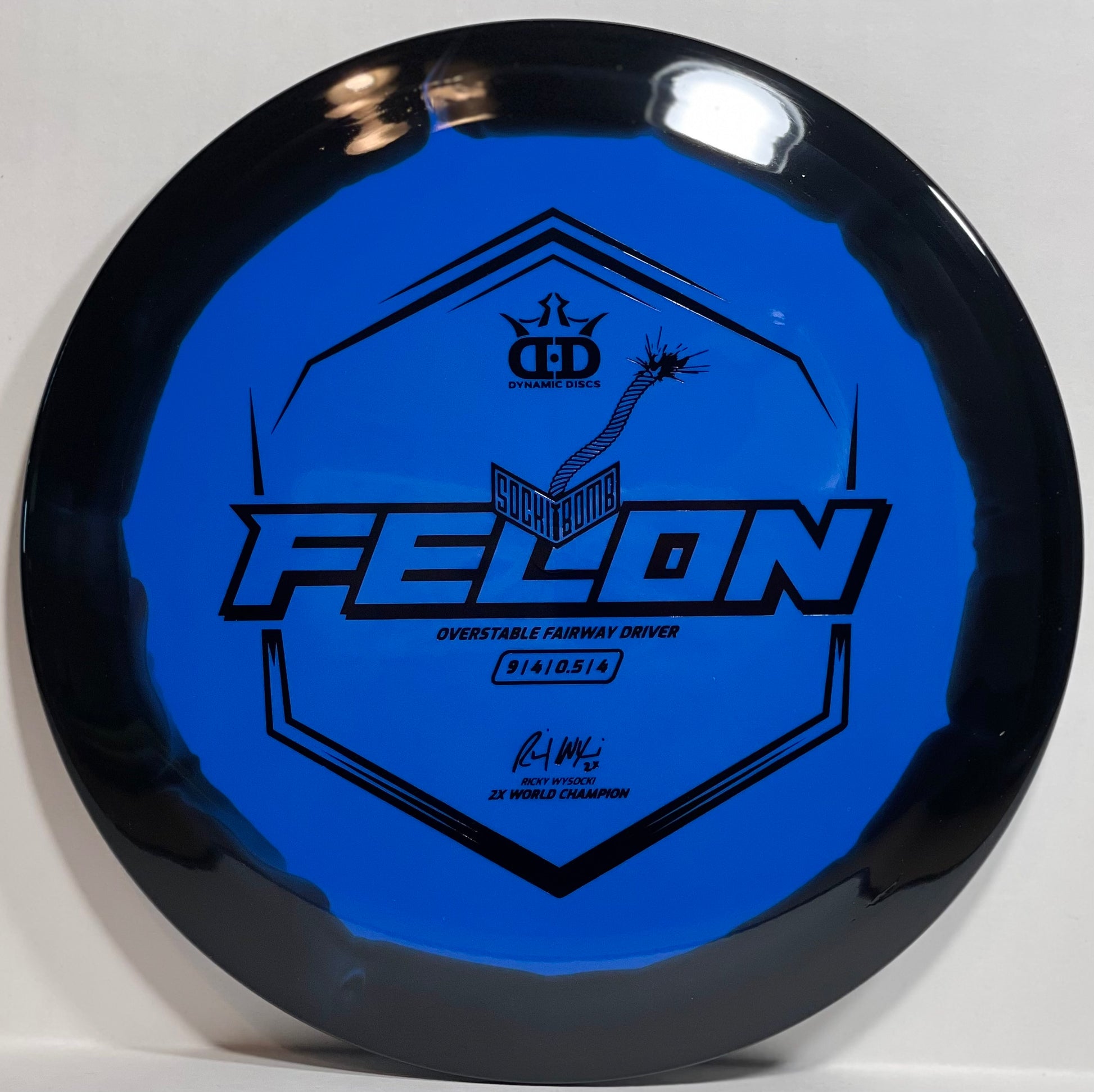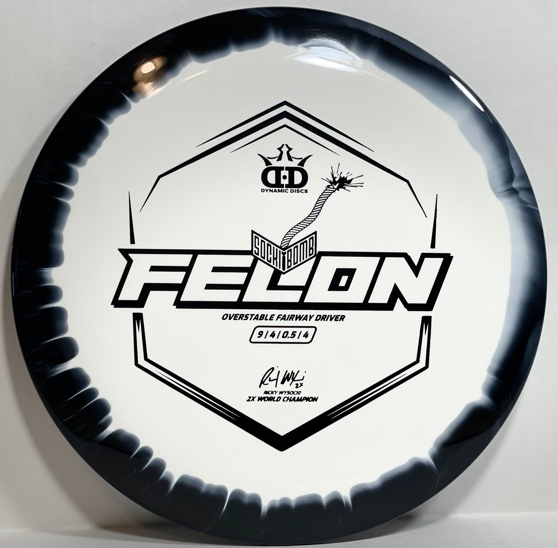 Introducing the new Sockibomb Felon - the ultimate overstable disc designed by 2-time world champion disc golfer, Ricky Wysocki. Made from the highest-quality Supreme plastic from Dynamic Discs, this disc is built to last and deliver outstanding performance. The Supreme plastic offers a perfect combination of soft feel, rigid rim, and perfect flex, providing players with superior grip, durability, and comfort in all playing conditions. The Sockibomb Felon's unique overstable flight characteristics make it an ideal choice for forehand throws. Its ability to handle power and deliver tight, accurate lines makes it perfect for players looking for a dependable forehand disc. Whether you're a pro or just starting out, the Sockibomb Felon is a perfect choice for disc golfers looking for a high-performance disc that can handle power and deliver results. Get your hands on the Sockibomb Felon today and experience the ultimate in disc golf performance.
