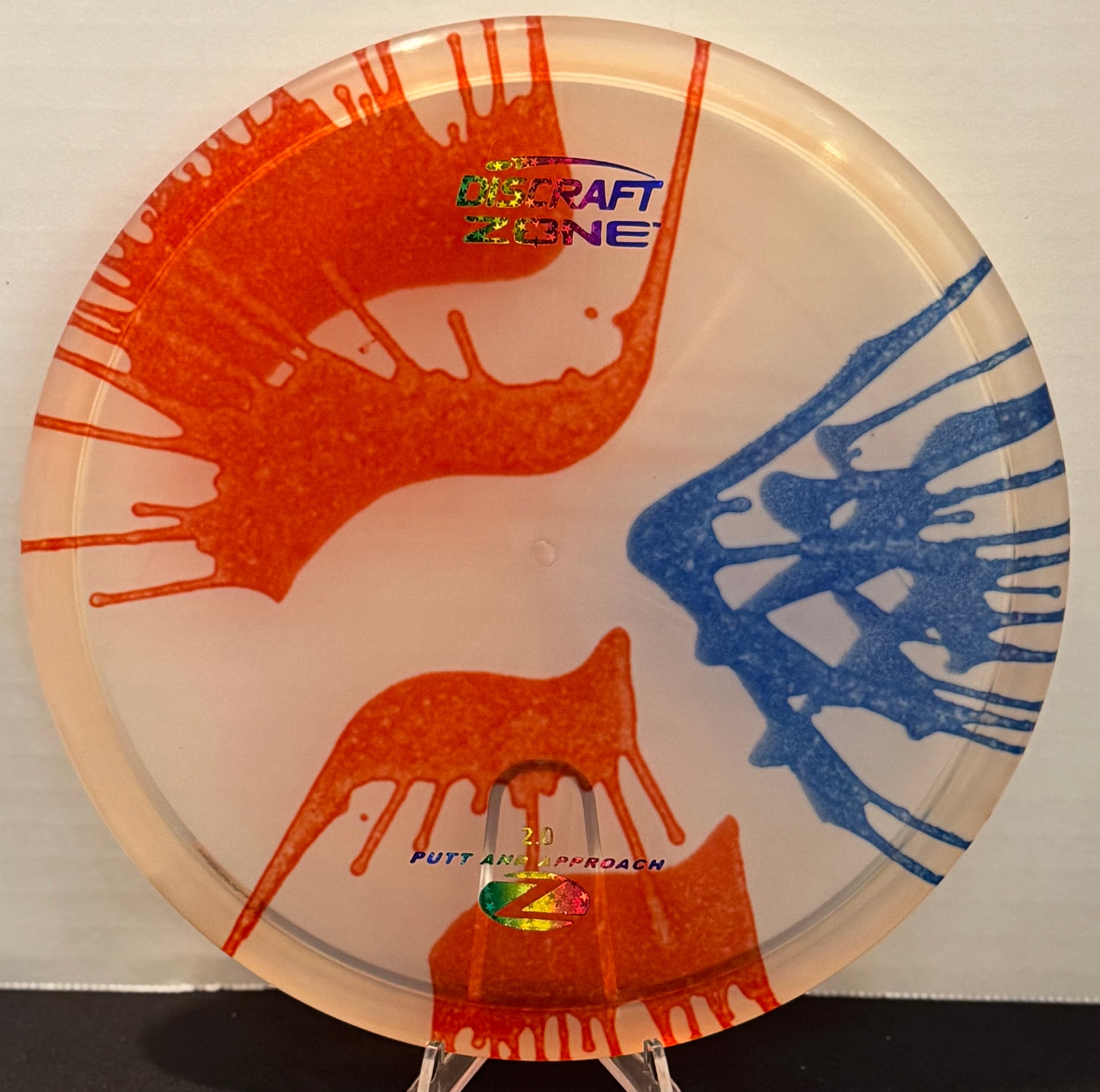 Stand out on the course with the Fly Dye Zone, an overstable putter known for its vibrant designs and reliable flight. The Fly Dye plastic offers a unique aesthetic with bold, multi-colored patterns, ensuring no two discs are alike. This disc provides a consistent fade and excellent control, making it perfect for handling headwinds and executing precise flick putts and forehand approaches. The Fly Dye Zone's slim profile and thick rim provide a comfortable grip and dependable performance, making it a versatile choice for players seeking a stylish and reliable putter. Whether you're looking to make a statement or need a disc for strategic shots, the Fly Dye Zone delivers the performance and personality you need.